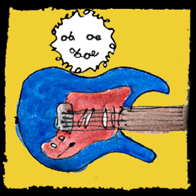 while Oboe plays guitar with his hands and records