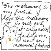 tries to make friends with the metronome.